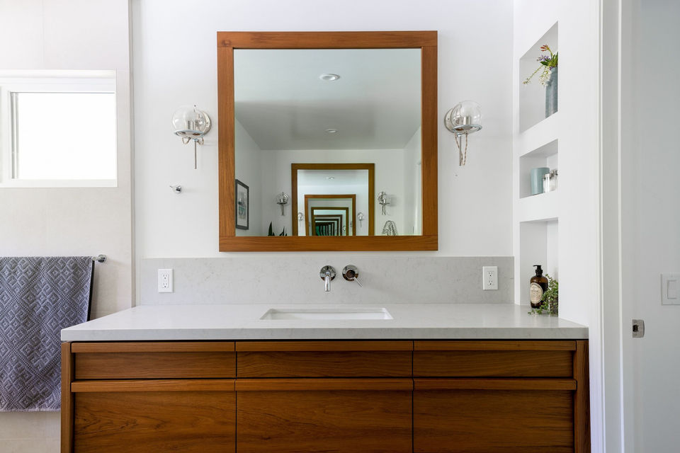 With plans to start a family in the near future, this couple wanted a remodel that would give them a home that was both artistic and family-friendly. The ceiling was vaulted to let in more natural light and walls were removed to connect the kitchen, dining room and family room. The primary bathroom was transformed with his-and-hers vanities, a free-standing tub and a large walk-in shower. A second bathroom was updated with family members in mind. We added a trough sink and a handheld shower head in a lower location for sandy kids (or dogs!). The future is now the present, with two beautiful little girls in the family!